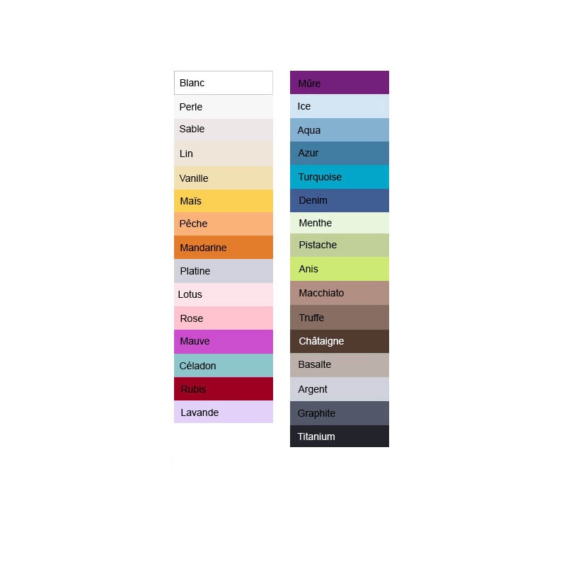 Des teintes claires aux tonalités sombres, nous vous proposons une palette de 31 coloris :