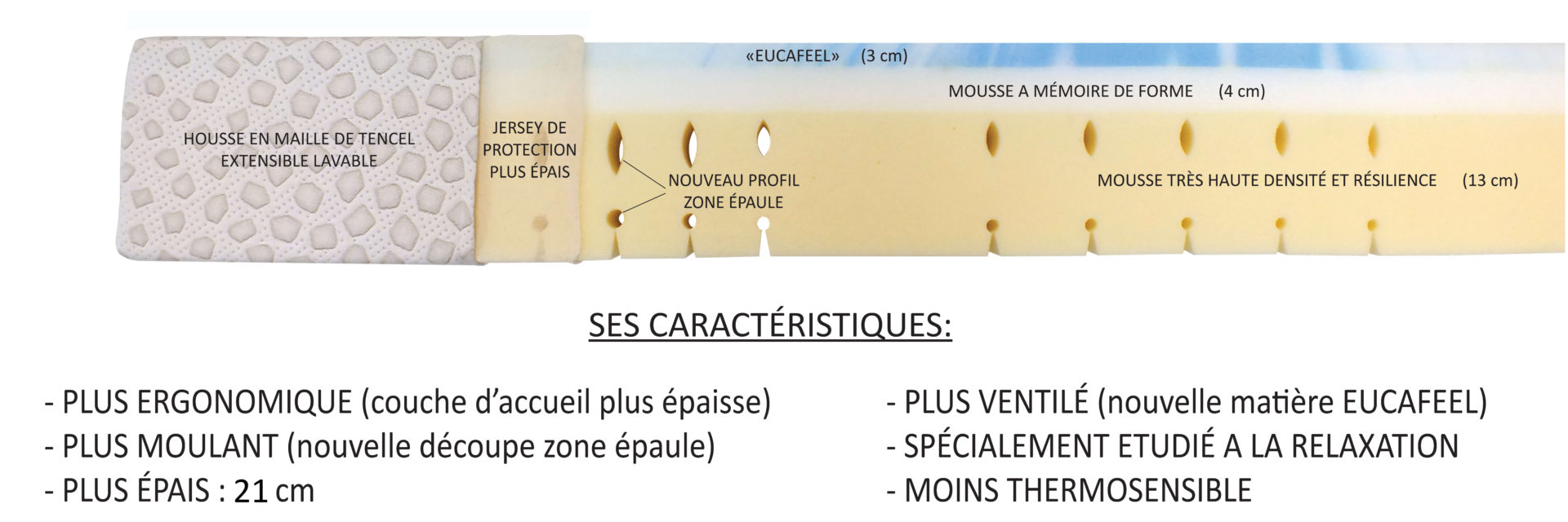 • Plus épais : 21 cm
