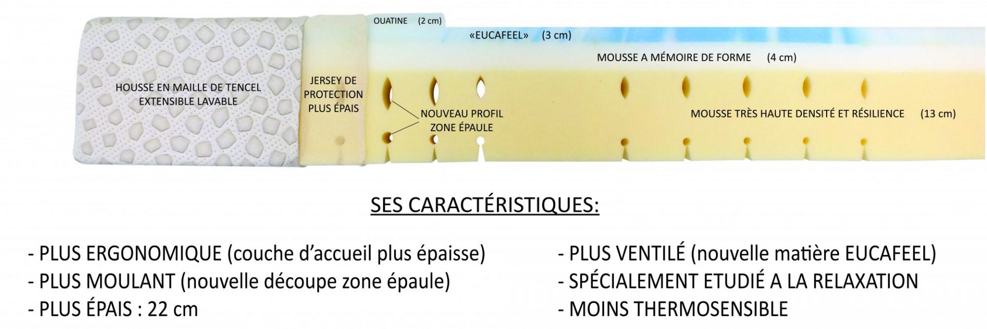 - Plus ergonomique grâce à sa couche de mémoire de forme plus épaisse (4 cm)