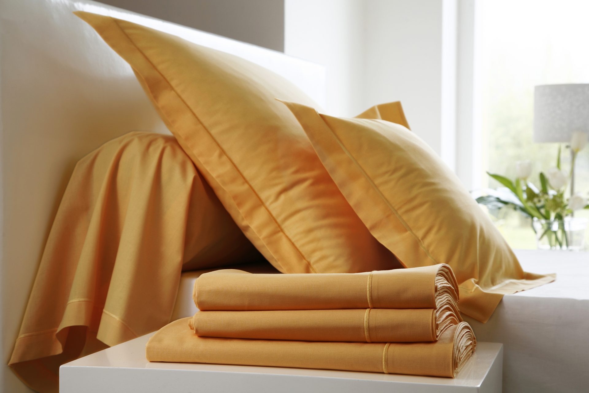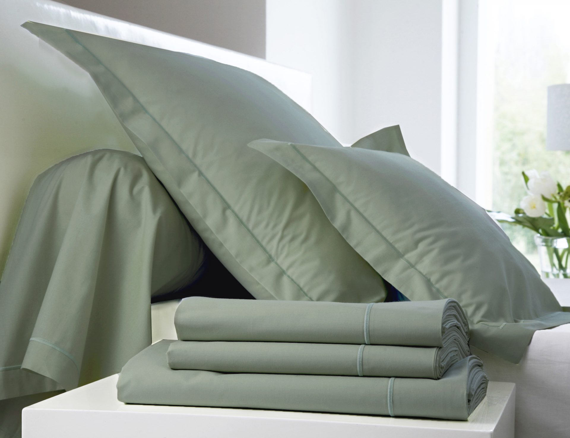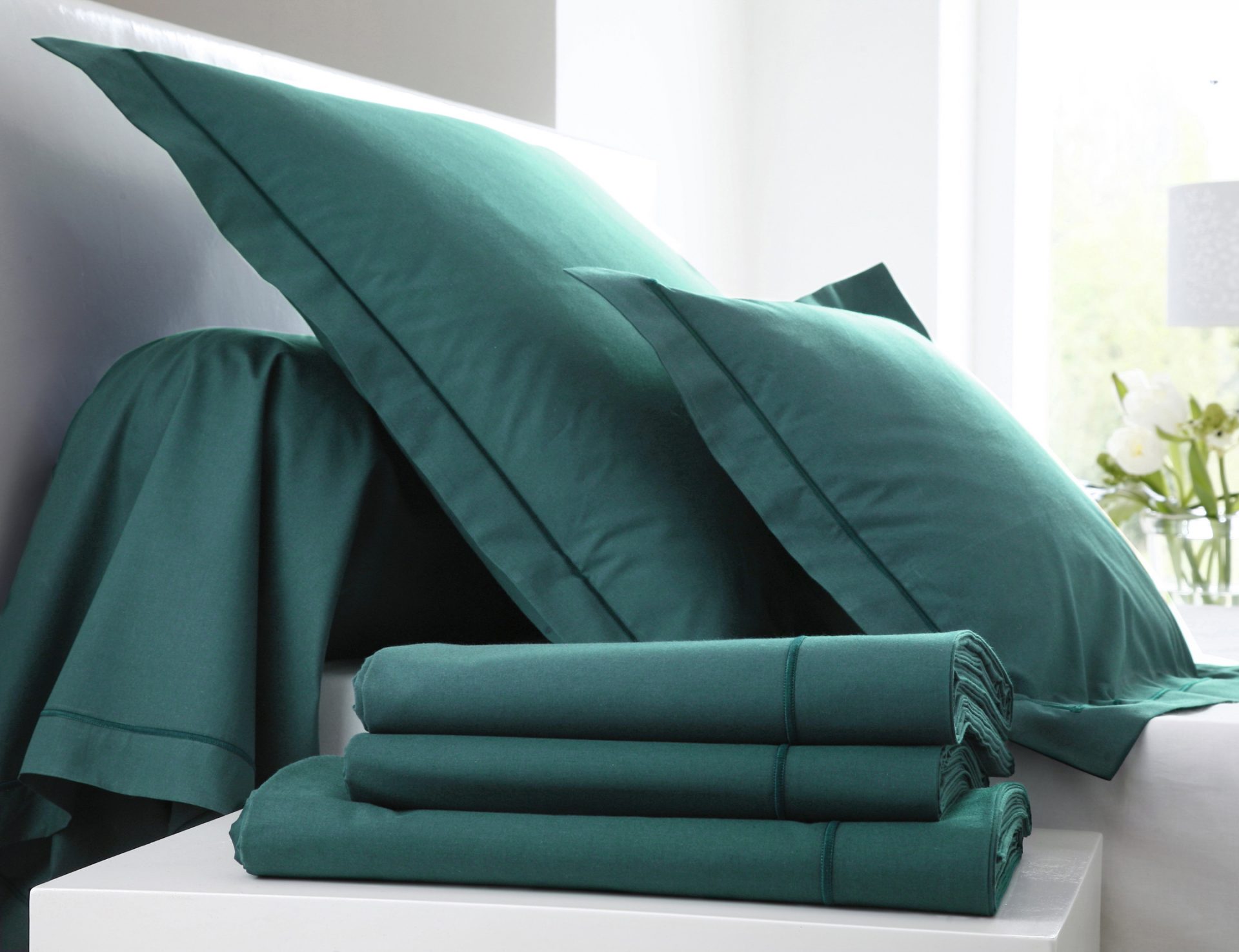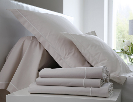Drap plat, housse de couette, taies d’oreiller et de traversin, pour des lits de 2 personnes et de 1 personne.
