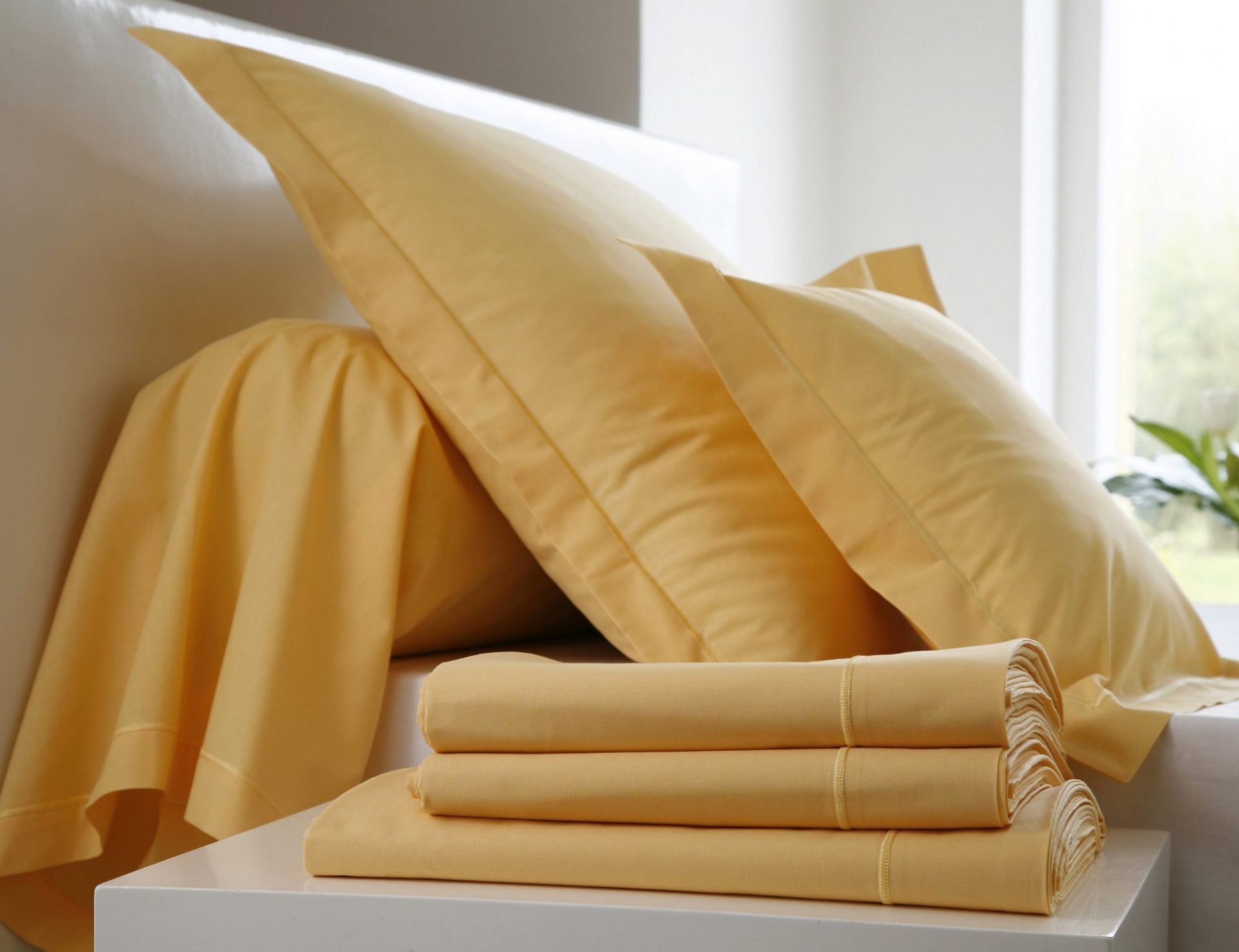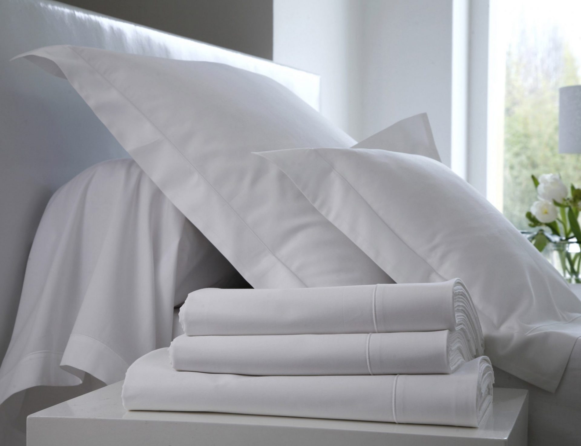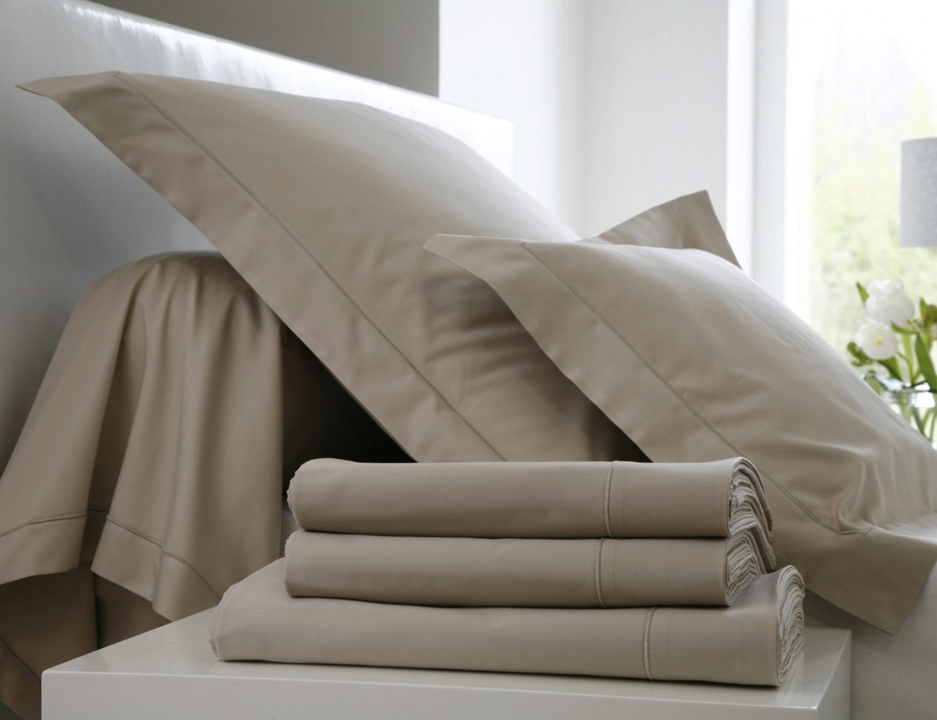 Drap plat, housse de couette, taies d’oreiller et de traversin, pour des lits de 2 personnes et de 1 personne.
