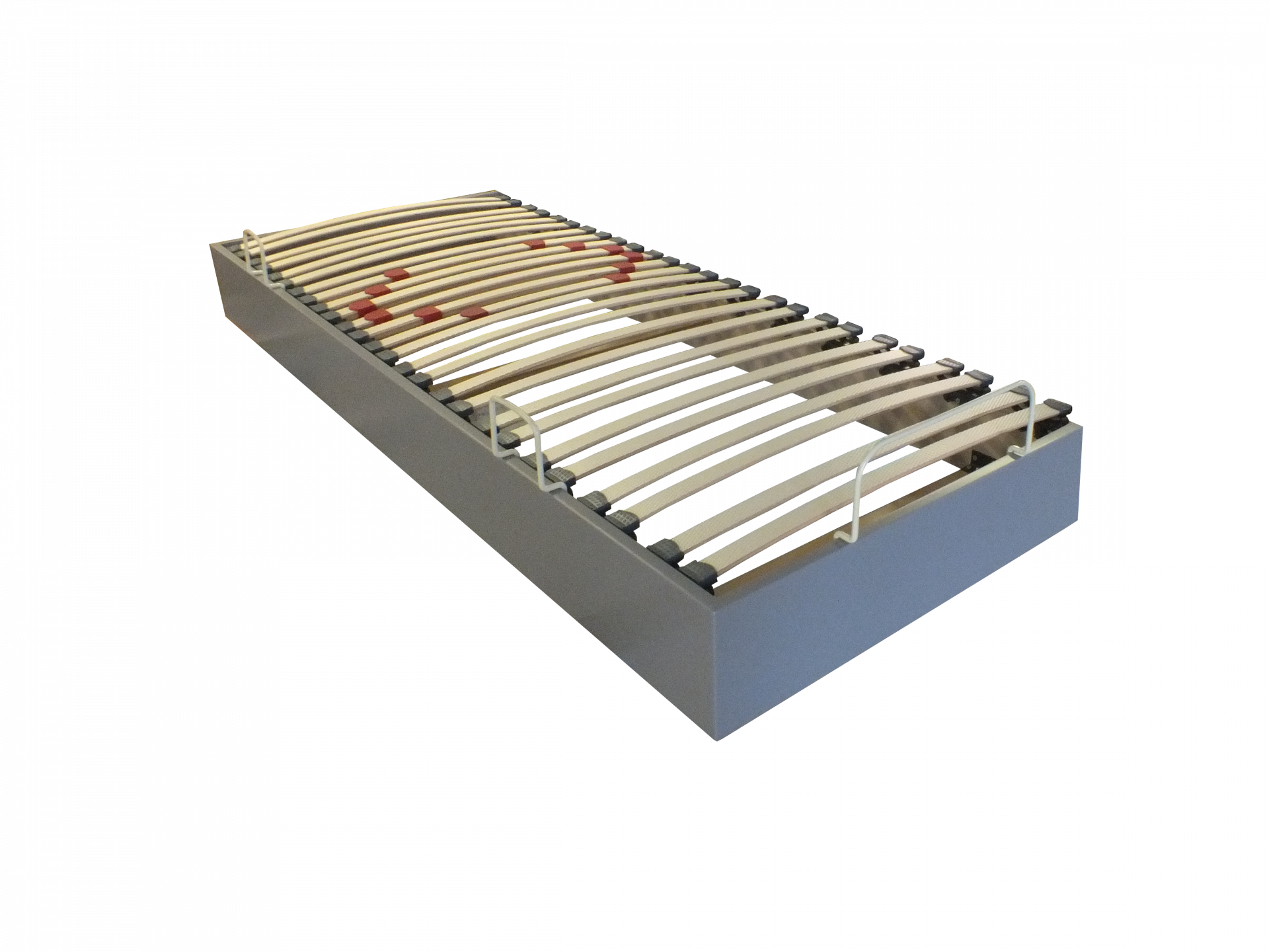 D’abord, nous utilisons des lattes composites spécifiques, « exclusif à la Literie Westelynck » selon un cahier des charges très précis. Elles sont composées de différents matériaux en multicouches, ce qui les rendent plus résistantes que les lattes classiques (hêtre,bouleau). Ces lattes sont gaufrées en surface pour apporter une meilleure ventilation au contact du matelas. Ce qui évite au maximum l’apparition de tâches de moisissure.