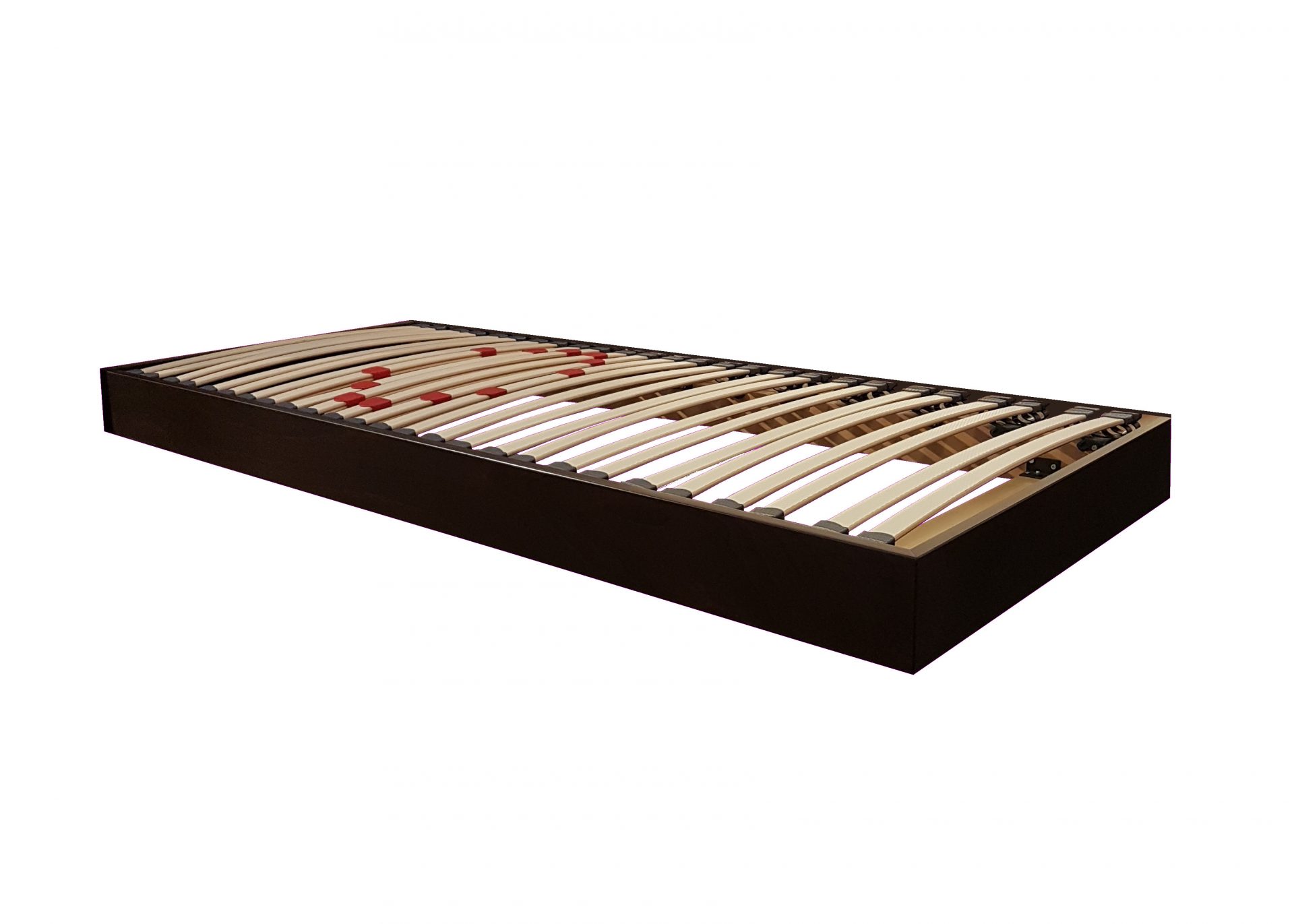 D’abord, nous utilisons des lattes composites spécifiques, « exclusif à la Literie Westelynck » selon un cahier des charges très précis. Elles sont composées de différents matériaux en multicouches, ce qui les rendent plus résistantes que les lattes classiques (hêtre,bouleau). Ces lattes sont gaufrées en surface pour apporter une meilleure ventilation au contact du matelas. Ce qui évite au maximum l’apparition de tâches de moisissure.