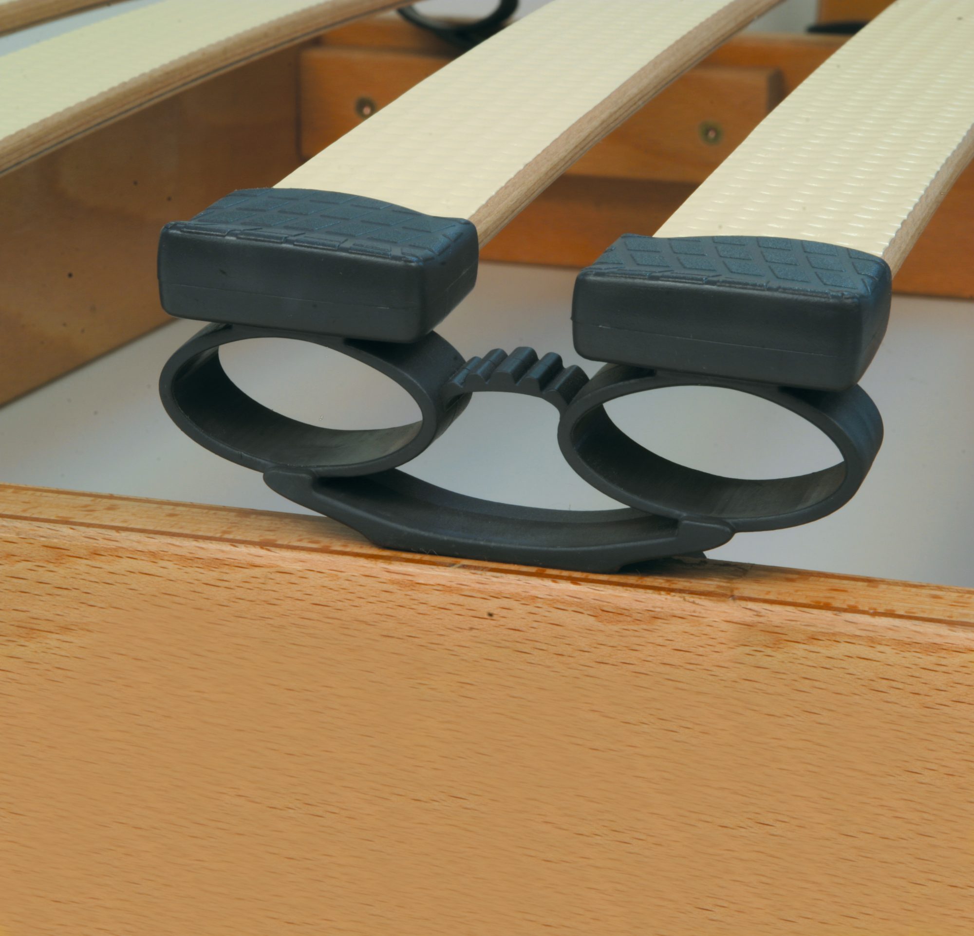 Pour une meilleure ergonomie, nos sommiers sont équipés de doubles lattes montées sur rotules.